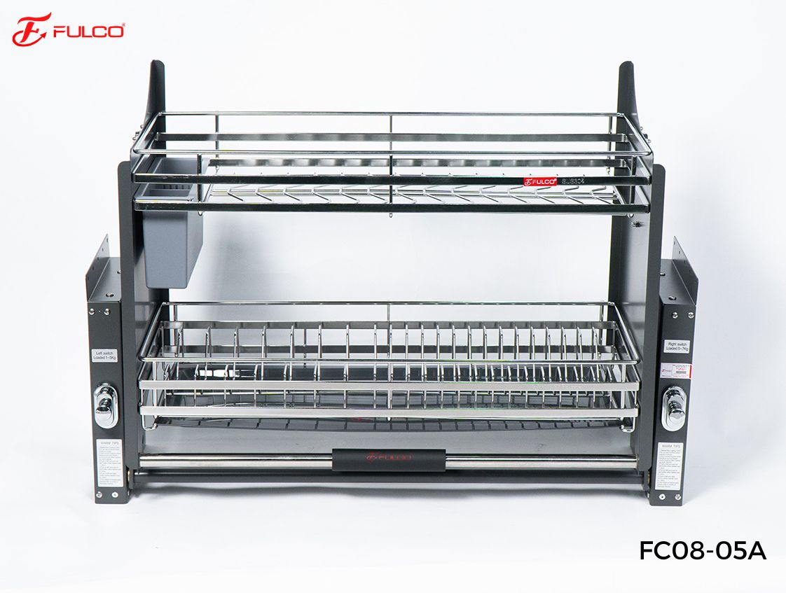 Kệ chén nâng hạ 304 thông minh Fulco được chế tạo bằng chất liệu inox SUS304 đảm bảo được sự sáng bóng, bền chắc. Nếu muốn căn bếp trở nên sáng và đẹp hơn, thì đây là một sản phẩm mà bạn không thể bỏ qua được lòng rất nhiều bà nội trợ bởi kiểu dáng hiện đại, mang lại cảm giác sang trọng cho không gian bếp. Kích thước vừa vặn với cấu trúc 2 tầng, giúp bạn có thể đựng bát đĩa thoải mái mà không lo chật chội.